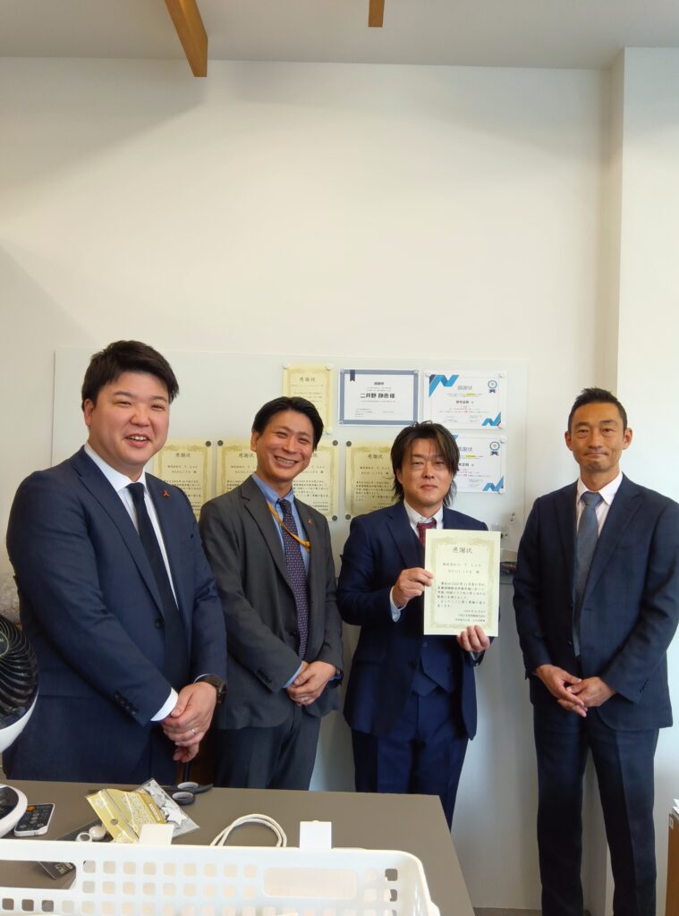 そしてその栄誉に際し、営業企画部長が弊社へ来訪され、表彰状の贈呈式も行われました。