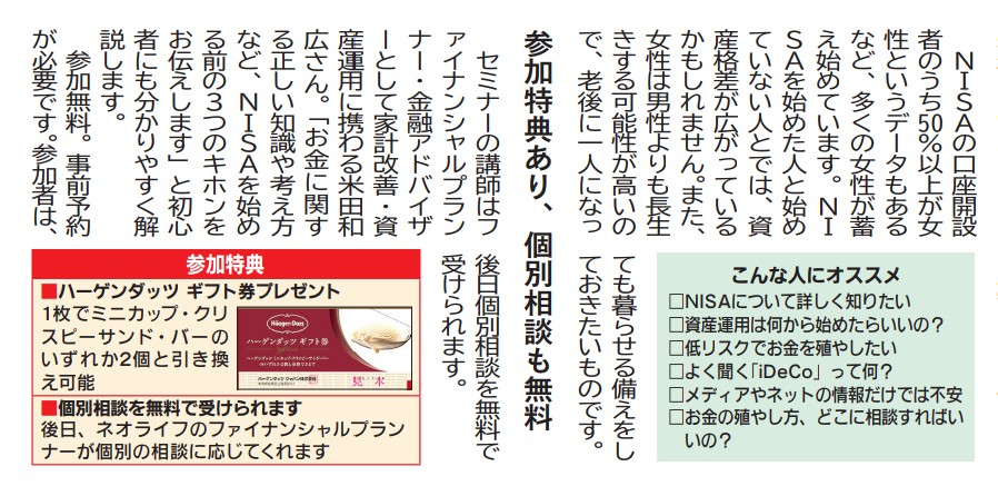 5月17日(日)に『女性のための「NISAセミナー」』を開催します。
